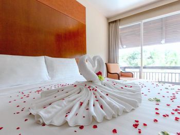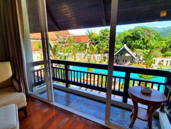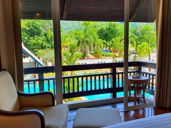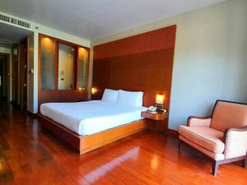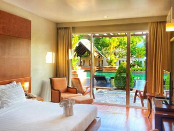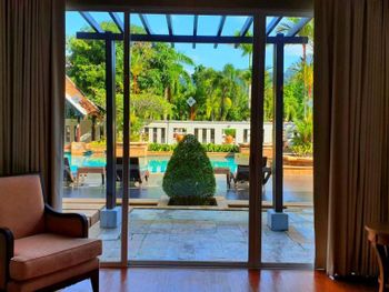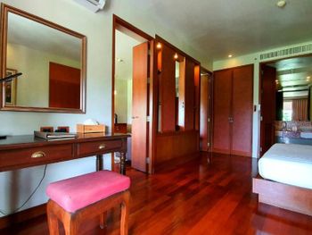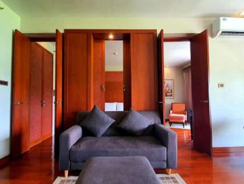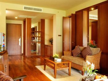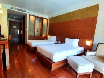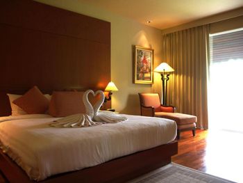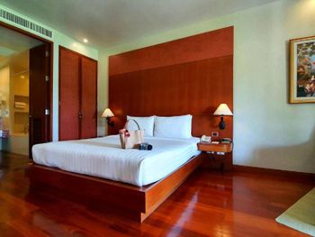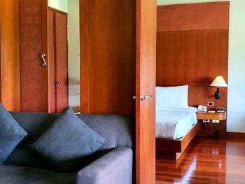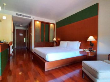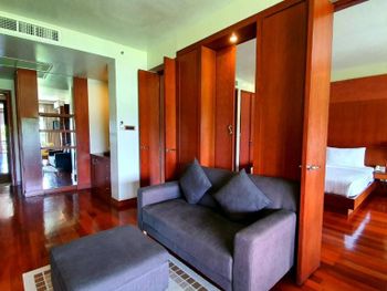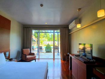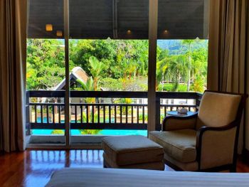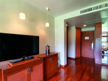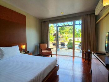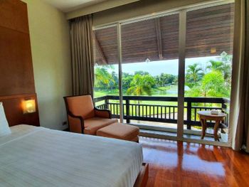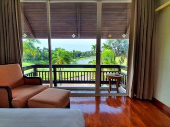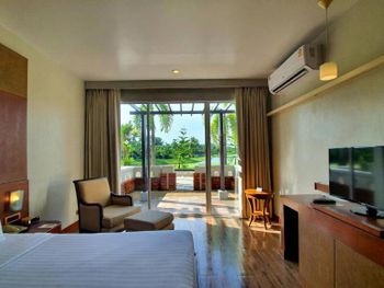 Spacious rooms at Mission Hills Phuket Golf Resort feature surrounding greenery or pool views. They are fitted with wooden furnishings and transparent sliding doors that let in natural light. A cable TV, fridge, and safe are provided in rooms.