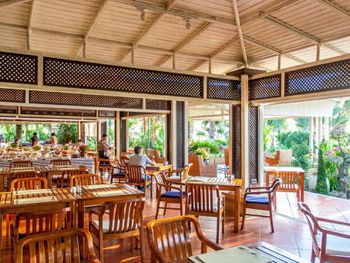 The dining options include Nibbler’s Bar and Patio Café, which offers international dishes.