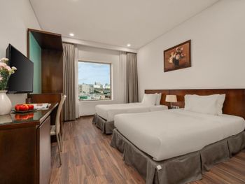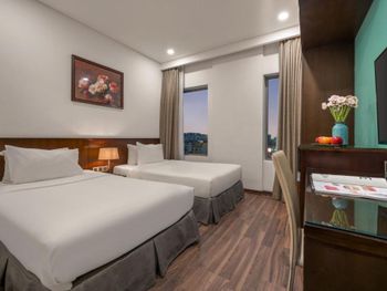 Мы оставались в отеле на 2 ночи. Взяли 2 номера без окон. Нам было хорошо и не шумно, так как отель находится рядом с мостом Дракона и довольно шумная улица рядом. Хороший и простой завтрак, были суп, яйца, салаты, фрукты и хороший кофе, зелёный чай и т.д. Персонал хороший.