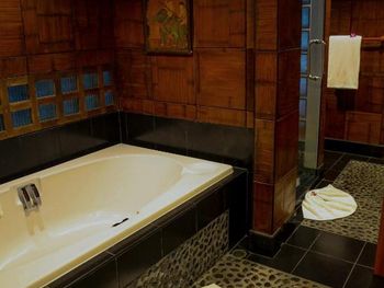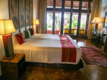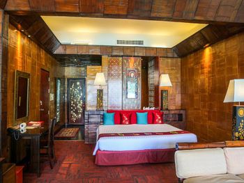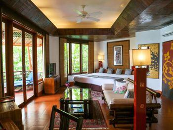 Все люксы комплекса Mom Tri’s Royale Villa с деревянным полом элегантно оформлены в современном тайском стиле. В числе удобств каждой виллы отдельный балкон и гостиная зона с телевизором с плоским 32-дюймовым экраном.