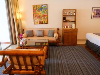 я бронировала делюкс в пляжном крыле. Там мы и отдыхали. Восхитительный вид! полная уединенность в непосредственной близости моря. Не нужны общие лежаки на территории отеля, так как лоджия терраса номера ближе к морю. Да, повторюсь, самое незабываемое в этом номере это вид!!!!!!!