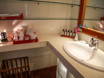 Если виды из номера захватывают дух, то сам номер очень старый. Раковина с дырочкой, шторы грязные, маловато места для чемоданов и вещей. Но, все равно, это не портит отдых