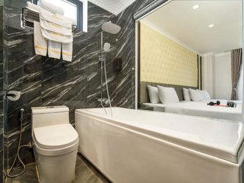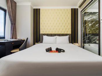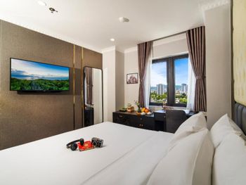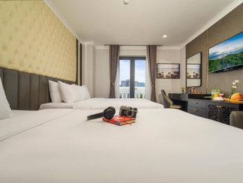 Отель новый, номер у нас был на 8 этаже с балконом,просторный ,новый ,чистый. Фотографии на сайте соответствует реальности. Расположение отеля хорошее ,тихо,в пешей доступности,кафе,рестораны ,магазины ,пляж ,массажи. За такую цену и качество считайте жили бесплатно. Персонал приветлив и всегда поможет . При отеле можно взять в аренду байк ,за 150000донгов в день . Только в первый день пришли убираться утром,но после убирались когда нас не было в номере.