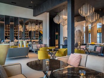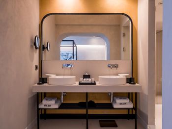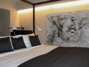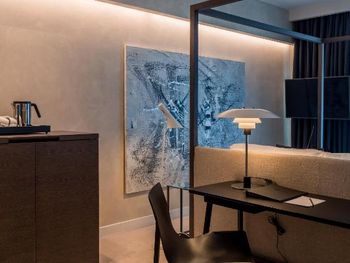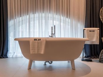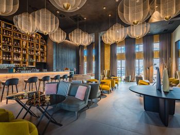 Потрясающий отель, стильный дизайн, удобная кровать, огромные окна и вид на площадь Свободы, ванна посреди номера — максимально эстетично и приятно. Много источников освещения.