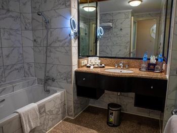 В туалете отсутствует и вытяжка ,и хотя бы освежитель воздуха-после его посещения по серьёзным делам ароматы оттуда расходятся по всей ванной комнате и оттуда в сам номер.