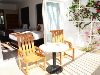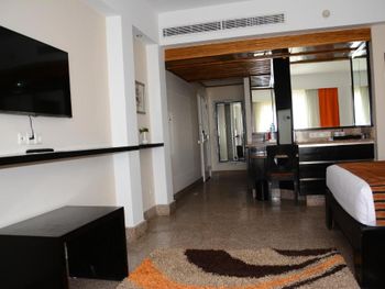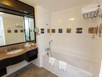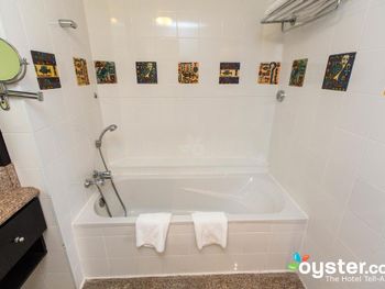 Красивая большая территория,номера достаточно большие,но зеркала ,стекла грязные,мебель старая.За 200$ в сутки ожидали получше условия.