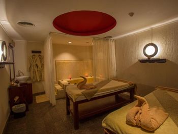 В арабском шатре, откуда открывается панорамный вид на Красное море, проводится массаж, а в 12 процедурных кабинетах спа-центра — разнообразные сеансы по уходу за лицом и телом.