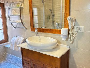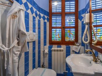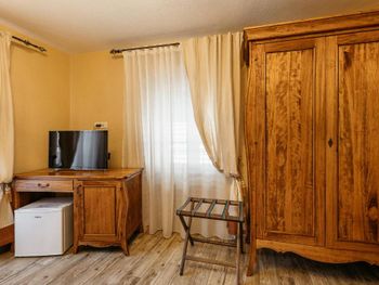Нам очень понравился персонал! Все так любезны и отзывчивы! Нас встретили на паркинге на маленькой машинке и довезли до отеля, так же было и обратно. Очень милая обстановка, настоящие ставни, которые так приятно открывать/закрывать. Ёлка во дворе😃 Хороший напор горячей воды! Расположение идеальное, рядом с главной площадью, подъемом на гору и в то же время с выходом из старого города, все в пешей доступности.
