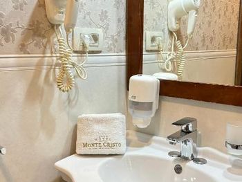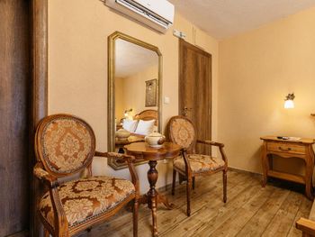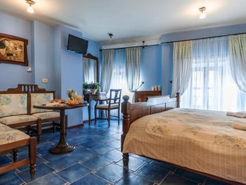 Отель внутри соответсвует внешнему виду старого города. Для любителей аутентичных мест, истории и особой атмосферы, энергетики . Еда: Завтраки включены, выбор есть, но небольшой, так как в основном все варианты включают яйца . Мы чаще всего брали омлет с ветчиной и сыром + круассаны - сытно, вкусно 🤤 В меню самого ресторана выбор намного больше, вкусная еда и оптимальный выбор напитков. Если мы хотели поесть в номере свою еду (этот отель не AI) нам любезно давали приборы и посуду из ресторана. В номере есть чайник и чашки. Вкусные чаи в пакетиках (все выпили 🙈) Вода в душе шла без перебоев, температура регулировалась свободно. Персонал приветливый и отзывчивый. Помогали заказать экскурсию, вызывать такси. Ключи от номера всегда можно было оставить на ресепшне и не думать о том, как бы их не потерять) В целом, классное место! Я бы с удовольствием остановилась там ещё раз)