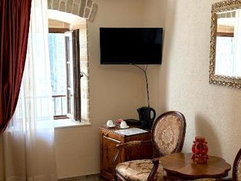 Отель в самом самом центре крепости и ценен именно расположением и атмосферой старого города. Советую прогуляться ночью. Каменные стены, мебель под старину. Завтрак прям на площади в уютном уголке с Зеленью. Завтрак вкусный и плотный.