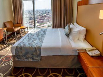 Номер не плохой, большая кровать. Холодильник и тд. Продают в баре алкоголь, но мы не воспользовались так забыли совсем про это. На завтраке нам сделали по просьбе омлет. Завтрак обильный!