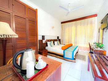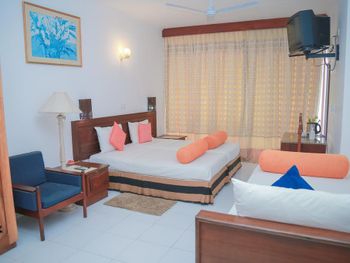 Невыносимо маленькие комнаты, мы брали размещение на трех взрослых, так там даже ребенком было бы совсем тесно, не говоря уж о трех взрослых. Все старое и страшное. В непосредственной близости можно расположиться во много раз комфортнее за те же деньги. Мы уже четвертый раз возвращаемся в Шри Ланку, Хиккадуву. Мне всегда нравился ресторан этого отеля, у них неплохое лобби, но проживание оказалось просто ужас. Через три дня переехали в отель метрах ста от этого.