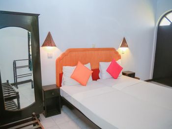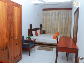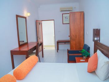 Отель находится на побережье индийского океана в городе Хиккадува. Это мой второй отдых в этом городе, поэтому есть с чем сравнить. Пляжи в Хиккадуве потрясающие....океан сказка...от отеля до пляжа с черепахами примерно километр. Завтраки в отели скудные, просто яйца, кофе и тосты. В номерах очень влажно. Кондиционер в номере то работал, то не работал (нам показалось что их специально отключали), вода была тоже с перебоями, на день ее стабильно отключали, вот только зачем? непонятно.......Уборка в номере по запросу....не попросишь убирать видимо совсем не будут. Вообщем отель по 5-ти бальной шкале на 3. Телевизора не ждите, его нет (хоть в описании и написано что он есть). Я еще из России попросила в номер холодильник, и он был - за это большое спасибо хозяину отеля. А еще очень удивило, что по приезду даже бутылки воды в номере не оказалось. В других отелях нас встречали более гостеприимно.