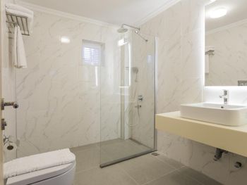 Замечательный отель, чудесный персонал. Очень довольна своим пребыванием здесь. Расположен отель не особенно близко к набережной, но зато на тихой улочке. Поблизости есть пара крошечных магазинчиков с бакалеей и снеками. До замка 15 минут пешком вместе с 5летним ребёнком. До мавзолея 10 минут. До амфитеатра 15 минут. До мельниц 40 минут. Территорий отеля приятная, много зелени. Бассейн регулярно чистят, у меня сложилось впечатление, что каждый день. Завтраки сытные: всё, что нужно для утренней трапезы, есть. Номер удобный, достаточно большой, чистый. Ванная комната тоже чистая и опрятная. Убираются каждый день. Вайфай работает отлично. Отдать одежду в стирку в отеле возможности нет. Но рядом много прачечных, куда ее можно отнести (мы отдавали утром, вечером уже забирали: одежда чистая, приятно пахнет, аккуратно сложена, могут погладить за доп.плату). Из прачечных приезжают по звонку, забирают одежду и потом привозят. Но мы не проверяли такой способ. Отдельный восторг - милые и доброжелательные люди, работающие в отеле. К ним можно было обратиться с любым затруднением. Помогли с покупкой билетов на самолёт до Стамбула.