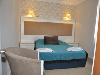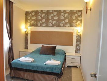 Уборка раз на раз не приходилась: то пол не вымыт в санузле, а то "лебеди" на кроватях и свежие занавески на окнах. Для пляжного отдыха расположение не самое удобное (только если вы любите много ходить, либо до автовокзала добежать, а там до пляжа на маршрутке доехать). Не очень удобные кровати и подушки. Но в целом впечатление осталось хорошее от отеля.