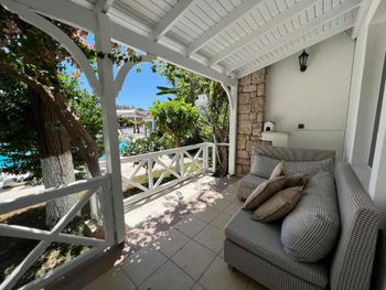 Очень красивый сад, чайник в номере, спокойное тихое место. Также есть бассейн.