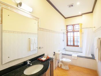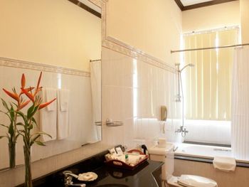 Отель старый, номер ужасный - сырой,. Стекло в номере все время было запотевшее, потолок в каплях, кафель на полу весь влажный. Вроде и чисто внешне, но приглядываешься - везде такая грязь, годами копившаяся. Отелю нужен хороший ремонт. Окна выходили на маленькую лагуну - так с утра туда пришли местные и начали орать и купаться. Железная дорога рядом и через каждые 10 минут поезд едет. Очень жаль потраченных денег , а больше всего времени - можно было хорошо провести в другом отёле