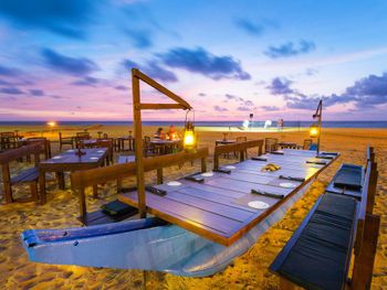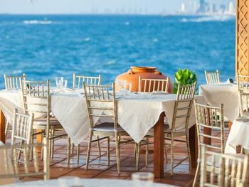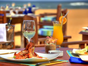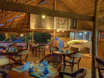 Очень красивый и вкусный ресторан с морепродуктами на пляже! Отличный вид из номера. Вкусный и очень разнообразный завтрак. Обед и ужин шведский стол с большим количеством и европейских и местных блюд.
