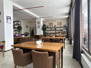 Ресепшен менее чем за сутки попытался отменить бронирование, отправил сообщение в букинге, когда уже были на границе, написали в ватс ап о том что разместить не получится, якобы какая то ошибка. Но в ответ на мое сообщение все уладилось. Номер ждали ровно до 15:00. Кафе при ресторане нет и делать в отеле особо нечего.