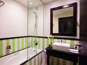 Выбрала этот отель, чтобы был возле Аль Мамзар Парк. Почитала, что есть трансфер из отеля до пляжа. Неудобство в том, что он только в 10-00 и 14-00 в направлении пляжа, надо бронировать заранее. До ближайшего мола Сенчури Мол 800 м, но тротуара на половине пути нет, то есть дойти проблематично и опасно. Локация соответственно проигрывает по всем параметрам. Неприятно было, когда после бронирования позвонила и уточнила стоимость пребывания со всеми налогами, то вышло на 20% дешевле, чем показывал букинг. Окно нельзя открыть, чтобы проветрить. Кислорода не хватает в комнате. Кое-где на потолке следы потеков.