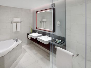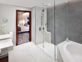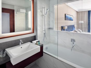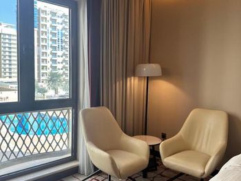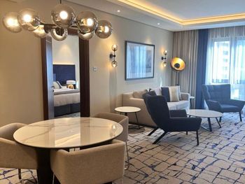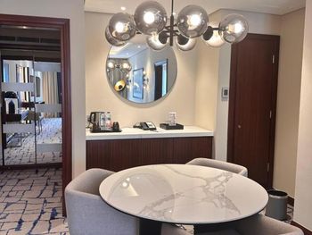 Отель Mövenpick Bur Dubai находится напротив Американской больницы, недалеко от шоссе шейха Зайда. До района Дубай-Хелскейр-Сити, торгового центра Wafi и архитектурной достопримечательности «Дубайская рамка» можно добраться за 5 минут. Поездка на автомобиле до торгово-развлекательного центра Dubai Mall, небоскреба Бурдж-Халифа и Всемирного торгового центра займет 10 минут. Расстояние до выставочного центра Expo 2020 составляет 32 км. Ежедневно гостям предоставляется бесплатный трансфер до торгового центра Dubai Mall и пляжа Кайт.Парам особенно нравится расположение — они оценили проживание в этом районе вдвоем на 8,2.Расстояние, указанное в описании, рассчитано с помощью © OpenStreetMap