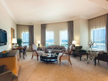 Все номера имеют просторную планировку, оформлены в теплой цветовой гамме и обставлены стильной мебелью, а за окнами простирается залив Доха-Бэй и городской пейзаж. В некоторых номерах обустроена гостиная зона.