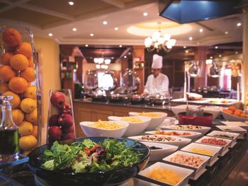 В отеле Mövenpick Doha работает несколько ресторанов. В главном из них, The Seasons, представлены блюда интернациональной кухни, а также проводятся тематические вечера. В лобби-лаундже подают свежий кофе, мороженое и различные десерты.