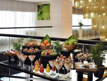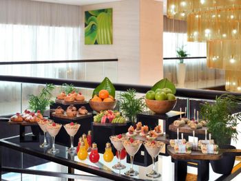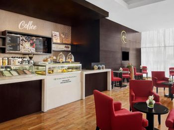 -Crema is a vibrant, naturally lit café offering a central meeting point with a refreshing ambiance, serving Mövenpick coffees, teas, and a selection of pastries, sandwiches, and signature desserts.