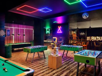 Urban Bar Kitchen -UBK is a lively sports bar with a relaxed ambiance, serving pub favorites and extensive drinks, featuring live sports, an outdoor terrace, and regular promotions including happy hour and live music.
