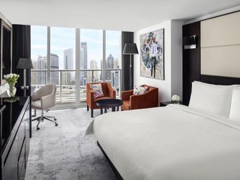 Located in Jumeirah Lake Towers in Dubai, Mövenpick Hotel Jumeirah Lakes Towers offers modern rooms with free Wi-Fi. The hotel features a fully equipped gym, an outdoor pool and a spa and is located 19.5 km away from the Expo 2020 grounds.
