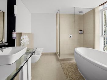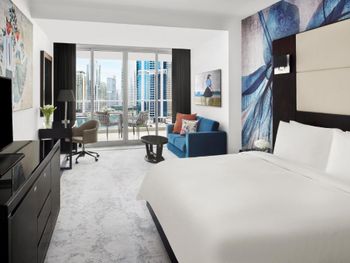 Each one offers views of Lakes and Dubai Marina Skyline, a flat-screen TV, tea and coffee making facilities, a spacious bathroom with a combination of bathtub and rainfall shower.