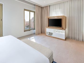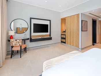 Так как это был до короны Мувенпик: то еще видно былое наследие: мраморная отделка, люстры, все, что еще не убито от прежней роскошной жизни. Еще отмечу чистую постель и наполовину новые полотенца. В бассейне берут пробы. Это все из плюсов. Остальное минусы: питание скудное, уборка отвратительная, зачем убрали полотенца с биде? многие услуги свернули, зачем убрали трансфер и лаунж для представительских номеров? нет живых цветов на этажах, поломан замок считывания карточек на двери входа на бассейн, двери в отеле все грязные от рук! какой там корона протокол? нет нормального заселения и выселения. Требуют депозит, мы положили наличными, потом была проблема их вернуть. Теперь отель отрезан от основной ветки метро и чтобы попасть на ЭКСПО или в город нужно вернуться на одну остановку назад и пересесть. Жуть как неудобно. На море теперь возят два раза день и то в самый солнцепёк в 11 и в 14 и то еще не факт, записываться нужно заранее. Так что это услуга номинальная и для того, чтобы ее не брали. На выходные устроили какую-то индийскую выставку, отель заселился индусами, кругом ор и музыка, но вдруг пожарили на завтрак хэшбрауны. В ресторане на открытой трассе мебель стоит без сидушек, так лысый ротонг. Видимо старая от прошлого отеля пришла в негодность, а новую не хотят купить. Гости сидят на голом ротонге. Вся посуда истертая. Просто позор на теле Дубая. Хочу быстрее все забыть... Не держу обиды, но и промолчать неверно. Считаю, что это неуважение к гостям. Так Вы растеряете многих постоянных клиентов и кажется, что вас будущее не волнует, лишь бы сейчас сэкономить, а что дальше - не важно. Политика арендатора, не хозяина.