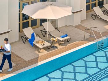 Как я уже рассказала сотрудникам, во многих общественных местах отеля грязно. К примеру на летней террасе, помимо пыли, которая характерна для Дубая, часто было много мусора, пепла, пятен на мебели. В зоне бассейна многие лежаки также в грязи странного происхождения. При выезде из отеля почему то никто не помог ни с чемоданами, ни с посадкой в автомобиль. Очень странно для отеля уровня пяти звезд