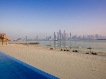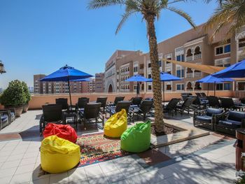 Единственное преимущество данного отеля - это пляж. В 10 утра вы садитесь в небольшой автобус, который за 10 минут привозит вас на пляж. Пляж очень хороший, но еда, как и во всем Дубае очень дорогая. Обратно либо в 2, либо в 4 часа за вами приезжает автобус и отвозит вас обратно в отель. Это единственное хорошее в этом отеле.