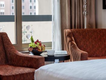 Так как это был до короны Мувенпик: то еще видно былое наследие: мраморная отделка, люстры, все, что еще не убито от прежней роскошной жизни. Еще отмечу чистую постель и наполовину новые полотенца. В бассейне берут пробы. Это все из плюсов. Остальное минусы: питание скудное, уборка отвратительная, зачем убрали полотенца с биде? многие услуги свернули, зачем убрали трансфер и лаунж для представительских номеров? нет живых цветов на этажах, поломан замок считывания карточек на двери входа на бассейн, двери в отеле все грязные от рук! какой там корона протокол? нет нормального заселения и выселения. Требуют депозит, мы положили наличными, потом была проблема их вернуть. Теперь отель отрезан от основной ветки метро и чтобы попасть на ЭКСПО или в город нужно вернуться на одну остановку назад и пересесть. Жуть как неудобно. На море теперь возят два раза день и то в самый солнцепёк в 11 и в 14 и то еще не факт, записываться нужно заранее. Так что это услуга номинальная и для того, чтобы ее не брали. На выходные устроили какую-то индийскую выставку, отель заселился индусами, кругом ор и музыка, но вдруг пожарили на завтрак хэшбрауны. В ресторане на открытой трассе мебель стоит без сидушек, так лысый ротонг. Видимо старая от прошлого отеля пришла в негодность, а новую не хотят купить. Гости сидят на голом ротонге. Вся посуда истертая. Просто позор на теле Дубая. Хочу быстрее все забыть... Не держу обиды, но и промолчать неверно. Считаю, что это неуважение к гостям. Так Вы растеряете многих постоянных клиентов и кажется, что вас будущее не волнует, лишь бы сейчас сэкономить, а что дальше - не важно. Политика арендатора, не хозяина.