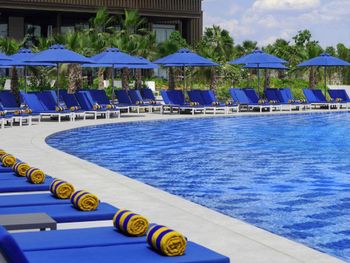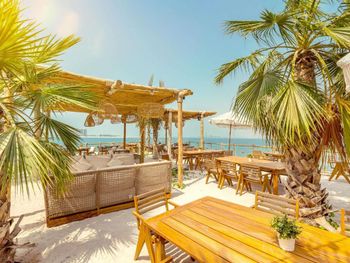 Пляж , вода стоячая есть запах канализации , с шезлонгами проблема надо занимать утром . Еда могла быть лучше.