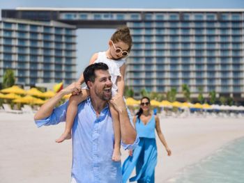 Провели две ночи в отеле . Хочется выразить большую благодарность менеджменту за бесплатный апгрейд номера во время check in. Это был приятный сюрприз. Балкон, прекрасный вид и небольшое отдельное помещение с диваном для дочери 10 лет . Завтраки были разнообразны. Были и классические блюда и ближневосточная кухня ( очень рекомендую) . Море было чистым, пляж с отличным мелким и чистым песком . Подойдёт и для малышей и для взрослых .