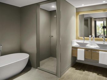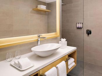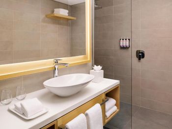 В номерах в Mövenpick Resort Al Marjan Island установлен кондиционер, телевизор с плоским экраном и сейф. Среди прочих удобств — письменный стол, чайник и мини-бар, а также собственная ванная комната с душем. В собственной ванной комнате есть бесплатные туалетно-косметические принадлежности. Гостям Mövenpick Resort Al Marjan Island предоставляются постельное белье и полотенца.
