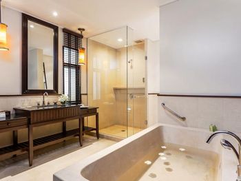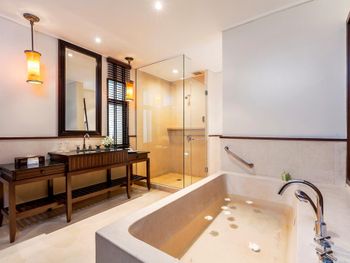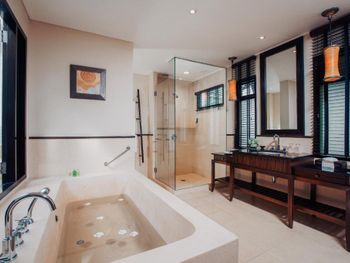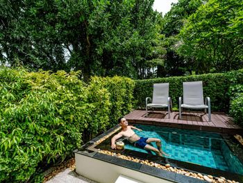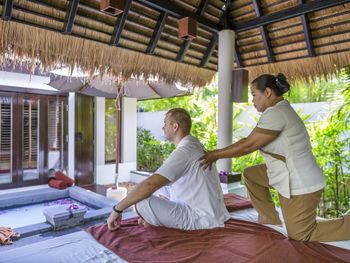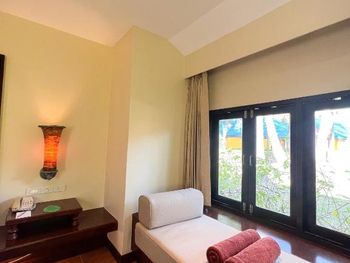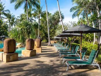 Это точно не 5 звёзд , с натяжкой 4 . Кондиционер работает отвратительно, и их никто не чистит. Жили в отдельной вилле , комфортную температуру настроить не возможно: либо холодно, либо лежишь ночью и потеешь , в итоге все заболели. От кучи фотографов и левых людей , которые заходят на территорию отеля тянет блевать, под каждым кустом они фотографируют свои толстые задницы. В ресторанах еде не вкусная, все время хочется есть. Больше туда никогда не поеду. Если кто привык отдыхать в Италии, на Тайланд даже время тратить не надо, будет глубочайшее разочарование. По приезду в отель ресепшн пытались навязать более дорогую виллу, в которую можно было заехать в 14:00, сразу по приезду. Нашу виллу мы ждали 2 часа , это своего рода развод на более дорогое проживание