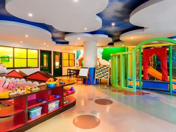 Есть игровая комната для детей, можно самим туда приходить с детками или оставлять на няню с доп.оплатой.