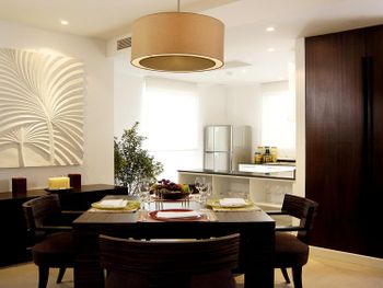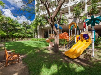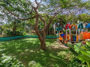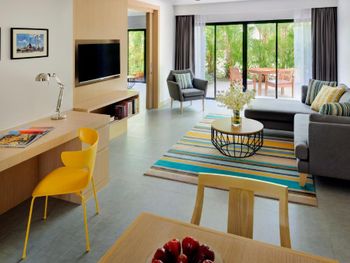 Отдыхали семьей с ребенком 3,5 года. Снимали виллу со своим личным бассейном на крыше. Фотографиям все соответствует. Но своих денег, я думаю не стоит. Основной бассейн у главного корпуса удобен для детей разных возрастов, так как имеет разную глубину и разделен друг от друга таким образом, что можно сидеть на шезлонге и спокойно наблюдать за тем как плещется твой ребенок. Очень зеленая территория. Очень удобная инфраструктура рядом с отелем, Есть все: обменники , кафе, магазины.