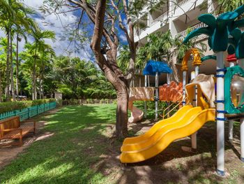 Довольно устаревший ремонт в номере, душ и кран в ванной это нечто. Кран расположен так что даже руки в случае чего неудобно помыть, не говоря уже о голове... Вода идет с перебоями, настроить равномерную температуру воды практически невозможно. Уборка в номерах не особо тщательная, под кроватью не убирали на протяжении всего нашего отдыха. Постельное белье не меняли 8 дней, поменяли его только после нашего снятия. Вся мебель в номере была изношена и в пятнах. Потолок так же был испачкан в каких-то пятнах. Кондиционер под конец отдыха начал плохо работать, но о просьбе его посмотреть и сделать его ничего не изменилось. Дно бассейна очень скользкое, маленькому ребенку очень тяжело ходить... В общем 3 звезды максимум. А за территорию 5. Цена условиям проживания не соответствует. В отеле дорого питаться к оплате взымаются 17%. Лучше кушать в соседних ресторанах, кафе и т.п.