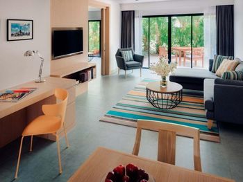 Старые, вонючие номера!!! Я считаю отель, который заявляет себя как 5 звезд или даже 4, не имеет права продавать такие номера!!! Или отремонтируйте, или закройте и не селите туда. На сайте номера значатся как "улучшенные". Это введение в заблуждение. Напишите: номера ухудшенной категории и снизьте цену! Люди хотя бы будут понимать, на что рассчитывать. Мы брали 3 номера на семью из 5 человек. И каждый был ужасен. Разбитый глазок на двери, протертое сиденье унитаза, сам унитаз доисторический, в подтёках, гигиенического душа нет, слабый кондиционер, везде стародревняя ужасного цвета плитка, свет в шкафу в коридоре не выключался вообще, мебель со сколами. Не могу добавить больше фотографий, к сожалению. С момента постройки, видимо, только стены красили. Запах всех жильцов, живших там за 30 лет, невыносимый. Одеяла и подушки срочно в химчистку! Было жарко, вытащили одно одеяло из пододеяльника, чуть не задохнулись. Подушки пахнут. Номера заявлены как 36м, это, видимо, с террасой. Комната метров 20, ванна не больше 6 и крохотный коридорчик. В общем, когда надо было возвращаться в номер, у меня реально портилось настроение. И никакие плюсы отеля не могут компенсировать такие номера!!! За номер 0 баллов! Остальная оценка отеля -сервис и чистота.