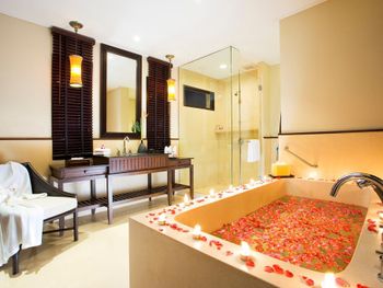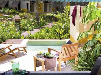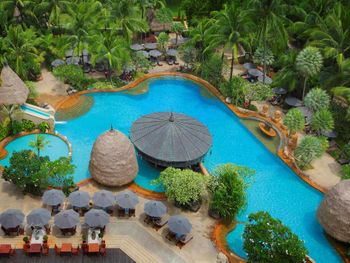 В этом отеле не в первый раз. Жили в номере Гаден вилла, номера старые, но хорошие! Особенно нравится душ на улице! Глубокие бассейны - а это большая редкость! Территория большая и красивая, очень ухоженная. Столько зелени , что чувствуешь себя как в ботаническом саду) Очень много кафе за территорией отеля, есть куда выйти погулять.