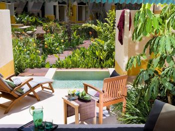 Мы жили на вилле с видом на сад. Таких вилл много и они очень близко друг к другу расположены. Таких денег, они, конечно, не стоят. Некоторые, даже, одну смежную дверь имеют, что совсем не комфортно. Звукоизоляции никакой! Лучше брать виллу с закрытым садиком, тогда только возникает ощущение обособленности.