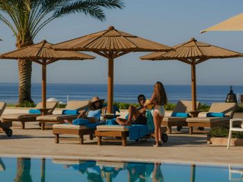 1 - Сервис оставляет желать лучшего (безусловно, некоторые сотрудники стараются сделать все, что в их силах, но на уровне менеджмента не проведена должная работа по обучению персонала, часто элементарным вещам, вроде обращения к гостям) 2 - Номера немного уставшие, особенно постельное белье, матрас, подушки и полотенца (весь текстиль не очень чистый, пополняют не весь комплект), уборка поверхностная 3 - Гест рилэйшн в вотсапе просто не работает, отвечают раз в сутки или вообще пропадают - не забронировали столик в ресторане, не заменили неработающий холодильник в течение недели, пришлось дважды обращаться на ресепшн, в итоге, принесли новый, но весь грязный внутри, помыли после дополнительной просьбы 4 - Питание крайне слабое, экономия чувствуется во всем, выдача главных блюд (мясных) под расчет, при этом, мясо сухое, а рыба - сырая, в целом, в столовой очень старый ремонт, грязно, почти до состояния антисанитарии, персонал расхаживает в грязной форме с грязными тележками с мусорным баком, куда сваливает прямо рядом со столиками остатки еды, из вкусного - лепешки от бедуинов, которые готовят раз в неделю 5 - Вечером любые напитки в видовых барах на берегу платные, хотя в столовой выдают такие же бесплатно 6 - На всю территорию с бассейном и пляжами 1 туалет в плачевном состоянии со сломанным замком 7 - Теннисные корты и тренажерный зал в запущенном состоянии, с минимальным набором старого оборудования