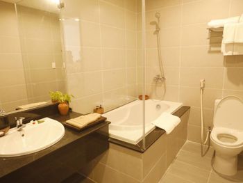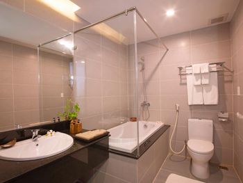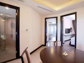 Понравилось всё. Приехали из Нячанга на две ночи, для проживания взяли виллу, она хороша! Ресторан отличный, большой выбор меню это я про ужин, бар у бассейна, деньги с собой можно не носить, всё записывают на ваш счет, оплаты при выселении, очень удобно. Завтрак шведский стол с большим ассортиментом. Отель расположен на первой линии, свой пляж и морюшко.