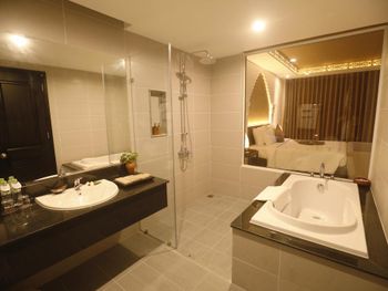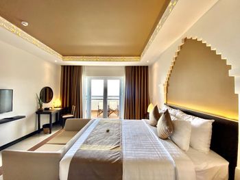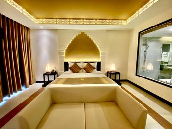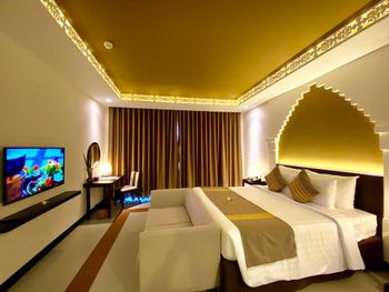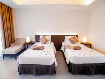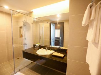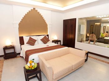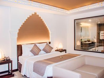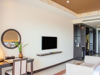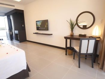 Номера оформлены в современном стиле и укомплектованы кондиционером, темной деревянной мебелью и телевизором с плоским экраном с кабельными каналами. Также предоставляются холодильник, сейф и фен.