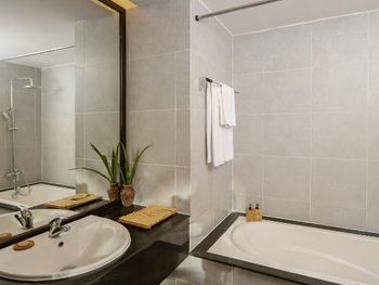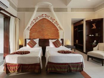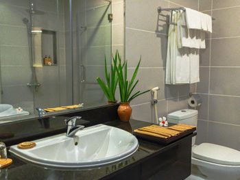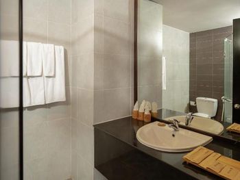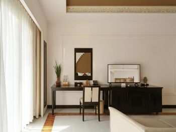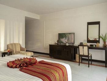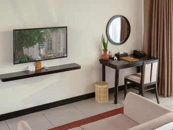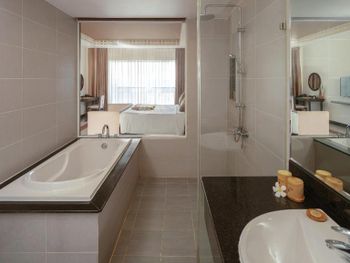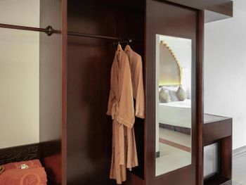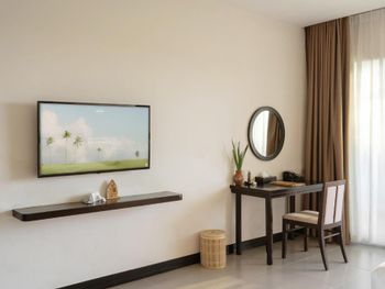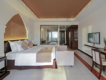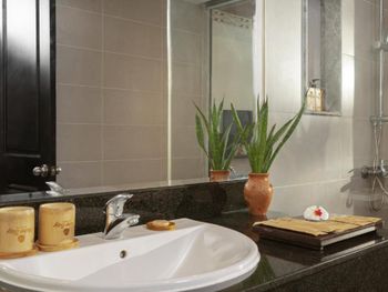 Номера оформлены в современном стиле и укомплектованы кондиционером, темной деревянной мебелью и телевизором с плоским экраном с кабельными каналами. Также предоставляются холодильник, сейф и фен.