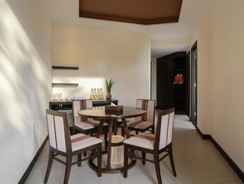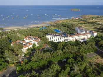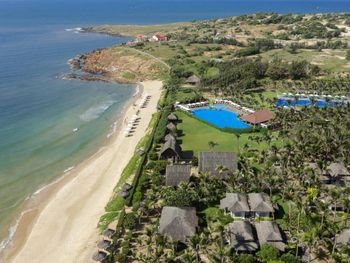 Понравилось всё. Приехали из Нячанга на две ночи, для проживания взяли виллу, она хороша! Ресторан отличный, большой выбор меню это я про ужин, бар у бассейна, деньги с собой можно не носить, всё записывают на ваш счет, оплаты при выселении, очень удобно. Завтрак шведский стол с большим ассортиментом. Отель расположен на первой линии, свой пляж и морюшко.